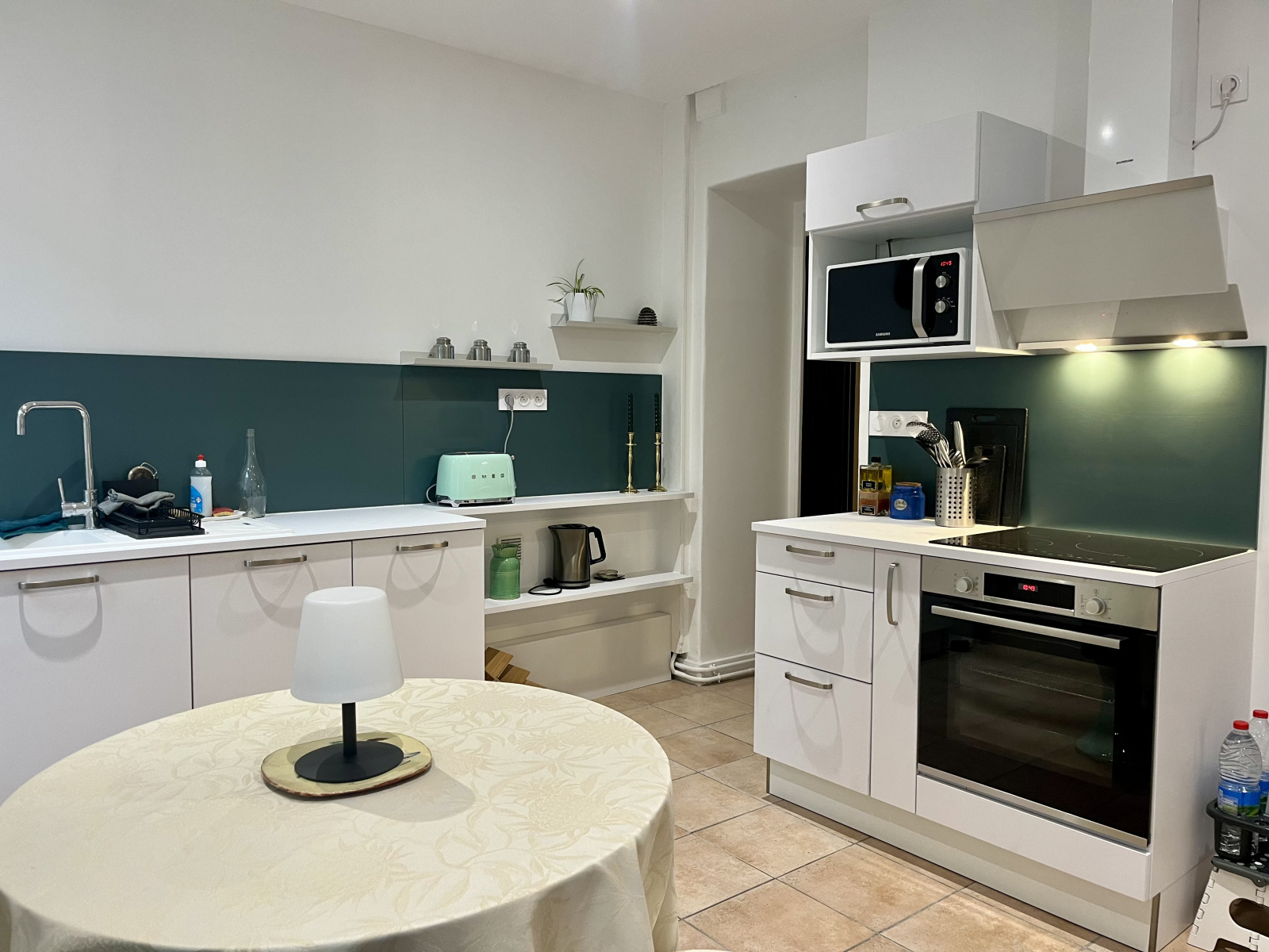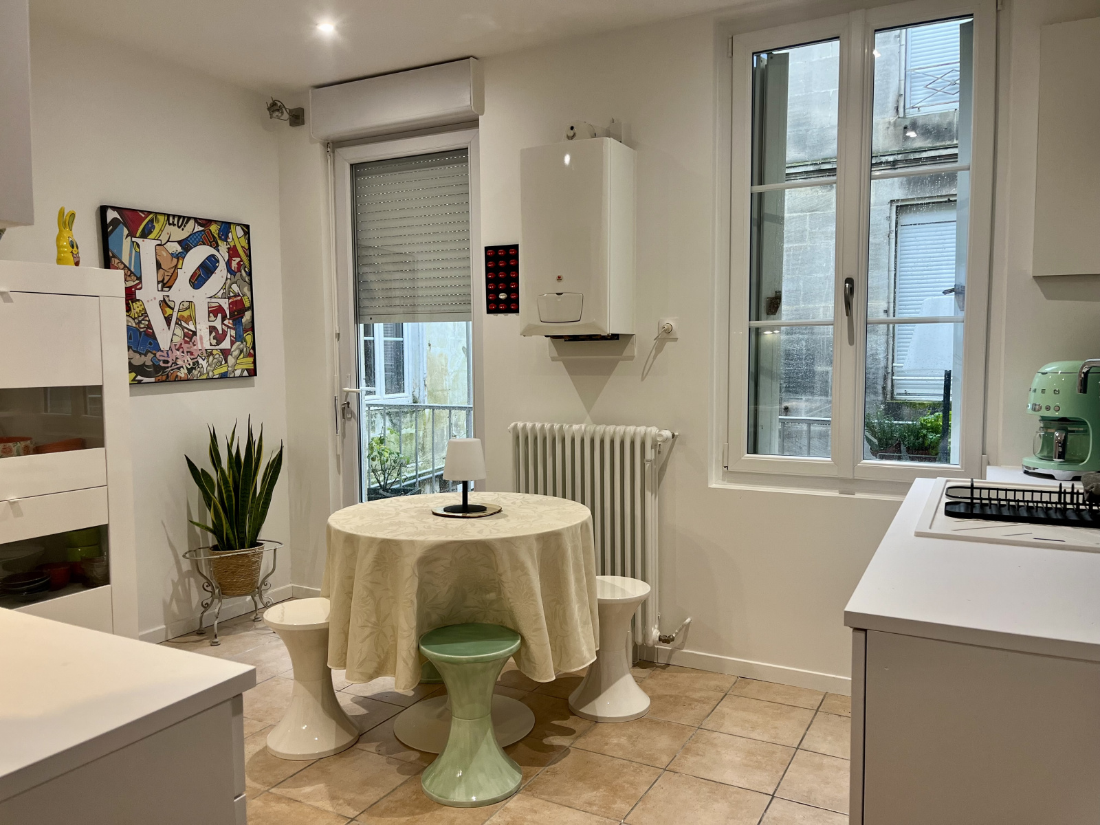 Une cuisine spacieuse et fonctionnelle, avec accès direct au balcon