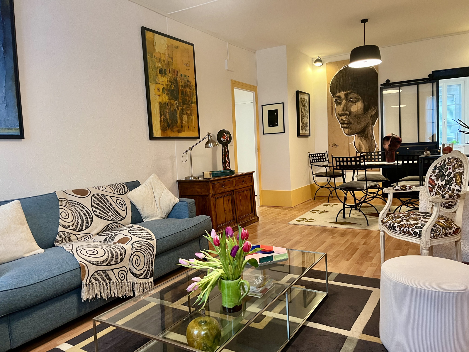 Un vaste séjour / salon lumineux, à l’atmosphère élégante